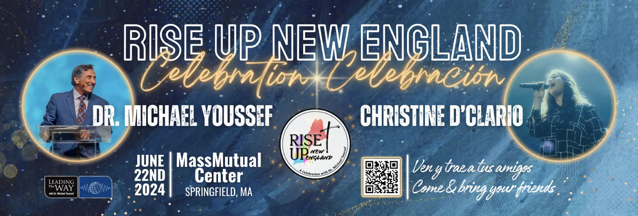 Join us at MA Mutual Center, Springfield for a Rise Up New England celebration with Dr. Joseph Youseef and Christine D’Clario. ALL tickets are FREE and distributed by the MassMutual Center – Ticket Office.
